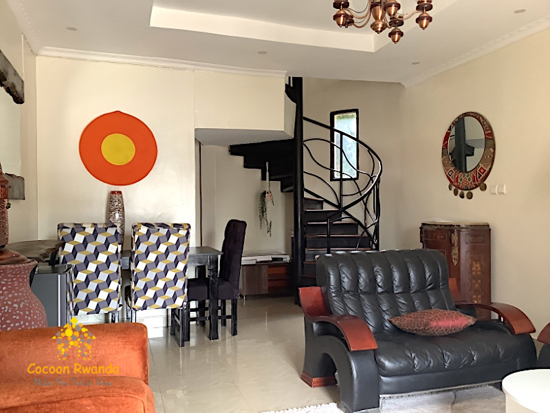 Stay in this vast furnished 6-bedroom storey house located in the family-friendly estate of Gacuriro nearby Airtel Data Centre. Gacuriro is a quiet residential neighborhood with lots of parks and beautiful views.